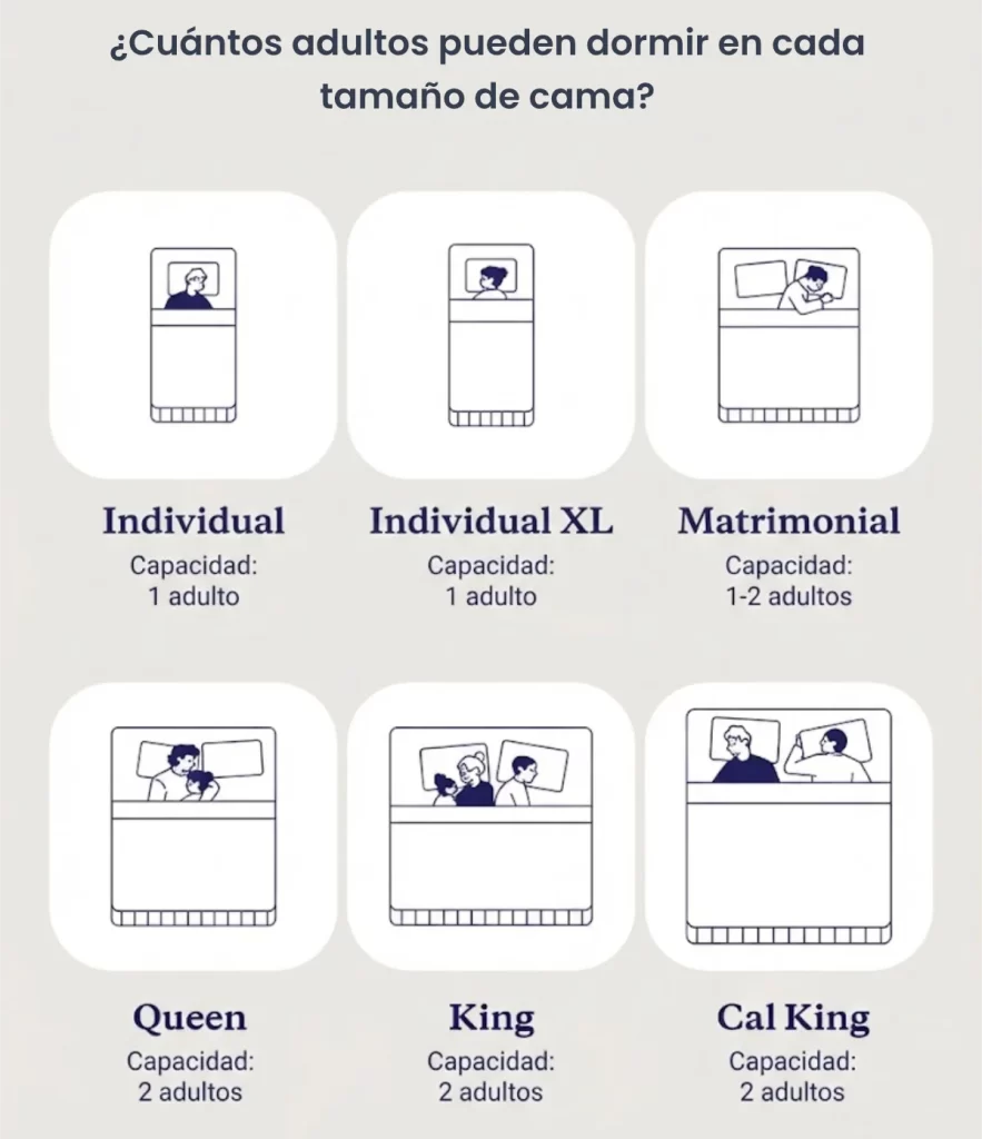 | Queen | 1.60 × 2.00 m | Parejas que valoran espacio personal |