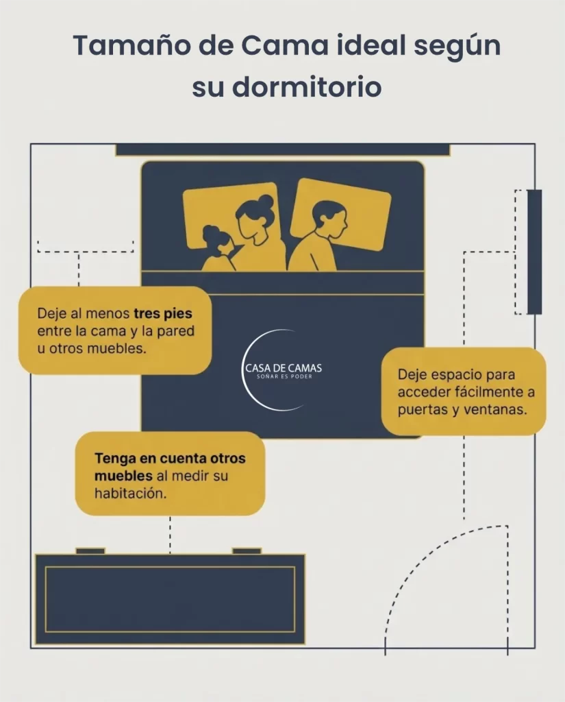 💡 Consejo de diseño: Una habitación grande no significa necesariamente una cama enorme. Considera el balance y proporción con el resto del mobiliario, dejando espacios libres que permitan respirar a tu dormitorio.